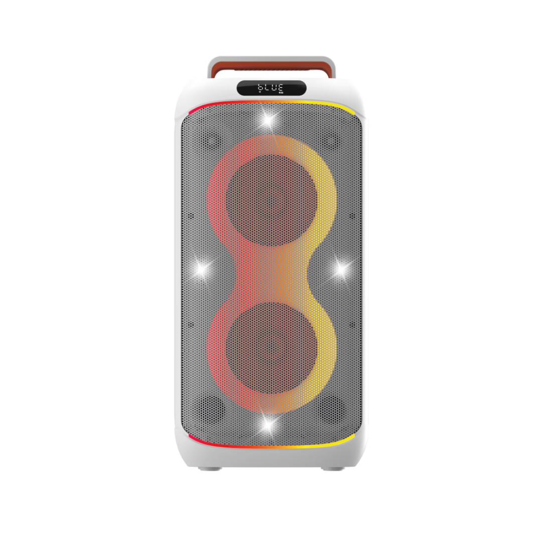 Incluye micrófonos inalámbricos, luces LED multicolor y múltiples opciones de conexión, convirtiéndolo en una solución completa para entretenimiento y karaoke.